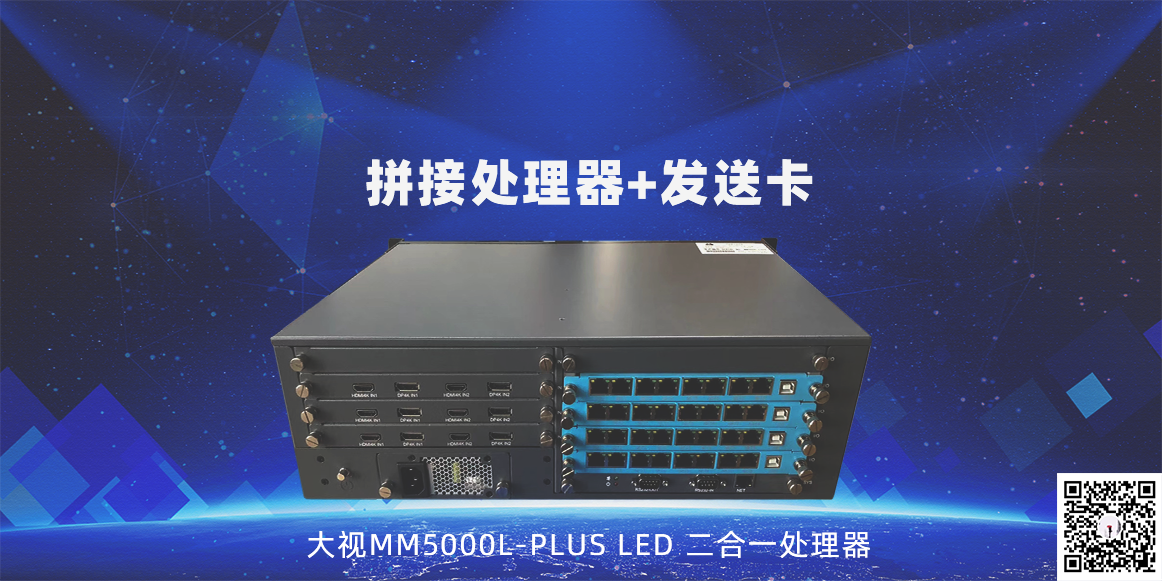 目前,大视推出一款集发送卡与拼接处理器功能为一体的 MM5000L-Plus LED 二合一处理器 ,可有效...