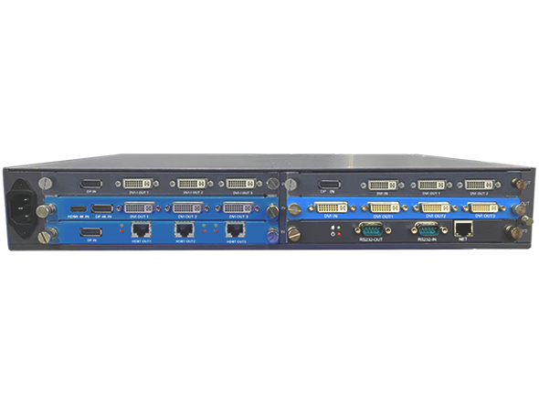 MV5000机架多屏处理器是可管理的机架式超高清多屏扩展设备。单机可支持5块DL-DVI/HDMI/DP三屏扩展卡混合插入;支持集中式以太网管理,支持开放管理接口;纯硬件模块化设计有效保证系统的可靠性,实现高密度的多屏扩展,为客户提供更高价值,可广泛应用于超高分辨率拼墙,虚拟仿真,展馆,指挥等高要求场合。